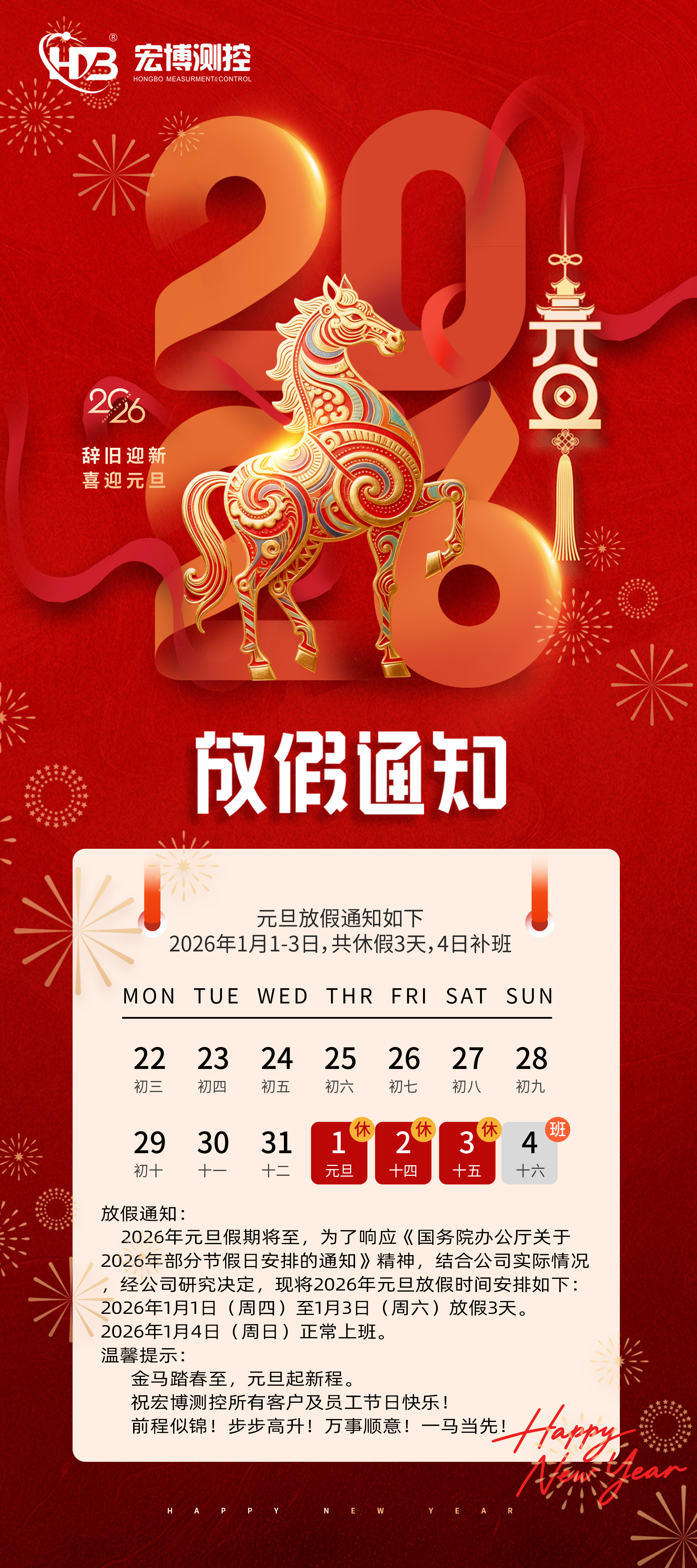 喜迎元旦!宏博測控元旦放假通知